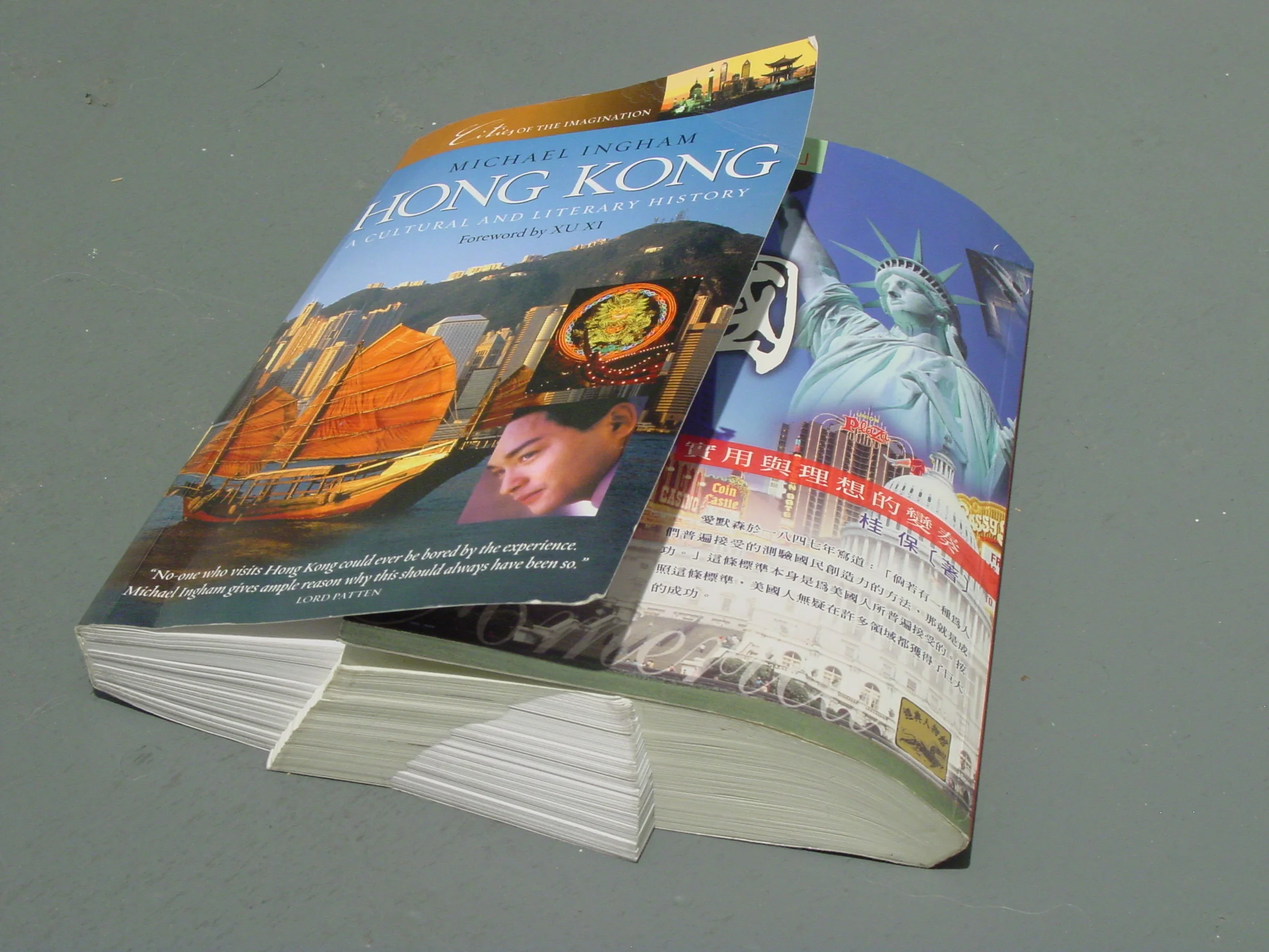 AN ENGLISH BOOK ON HONG KONG CULTURE AND A CHINESE BOOK ON THE AMERICAN DREAM ARE PERFECTLY WOVEN TOGETHER PAGE FOR PAGE.